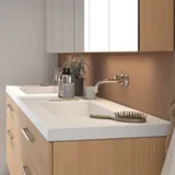 Til den plasskrevende familien, eller til deg som liker litt ekstra albuerom, er den doble porselensservanten en perfekt løsning som dobbelservant på det nye badet. Skuffer og skap leveres i mange forskjellige farger og overflater, fra minimalistiske nyanser til stemningsfulle trestrukturer. Alle skuffene har plassoptimerende rominndelere og innebygde dempere som sørger for at skuffene lukkes mykt.
