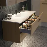 Et underskap, som fås i samme standardbredder som servantskapene, er en praktisk og attraktiv oppbevaringsløsning når du har god veggplass på badet.