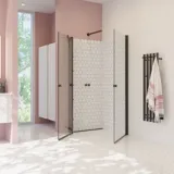 Match er et mix & match-dusjkonsept der du har et utvalg av faste veggmoduler og ulike typer dører som kan kombineres slik at de passer til ditt bad.