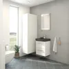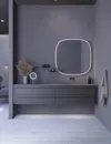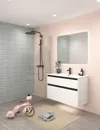 Det vakre Glow-speilet er bakgrunnsbelyst, og det firkantede speilet har avrundede hjørner for et mykere og mer harmonisk uttrykk.