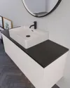 Når du bestiller en benkeplate hos Dansani, kan du velge servantskap og en toppmontert servant som plasseres oppå benkeplaten – for et stilrent og fleksibelt uttrykk. Husk også å velge riktig utskjæring, slik at avløpet passer mellom servant og benkeplate. Vårt system gjør det enkelt å sette sammen den løsningen som passer ditt baderom – enten du ønsker rene linjer, kontraster eller funksjonell oppbevaring. Alle benkeplater kan kombineres med våre møbler og tilpasses etter dine behov.