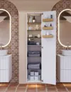 Visste du at du kan tilføre vakkert tilbehør til høyskapene dine? Hva med et fint lys inne i skapet som skaper en hyggelig atmosfære og gir deg god oversikt over tingene dine? Til noen skap kan du også velge en skittentøyskurv eller -pose som enkelt kan tas ut når du skal vaske. På denne måten slipper du å ha tøyet liggende på gulvet, det går rett i skittentøykurven i høyskapet. Når det er på tide å vaske klærne, kan du enkelt ta posen eller kurven med deg til vaskemaskinen.
