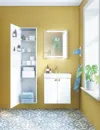 Det vakre Glow-speilet er bakgrunnsbelyst, og det firkantede speilet har avrundede hjørner for et mykere og mer harmonisk uttrykk.