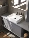 Det vakre Glow-speilet er bakgrunnsbelyst, og det firkantede speilet har avrundede hjørner for et mykere og mer harmonisk uttrykk.
