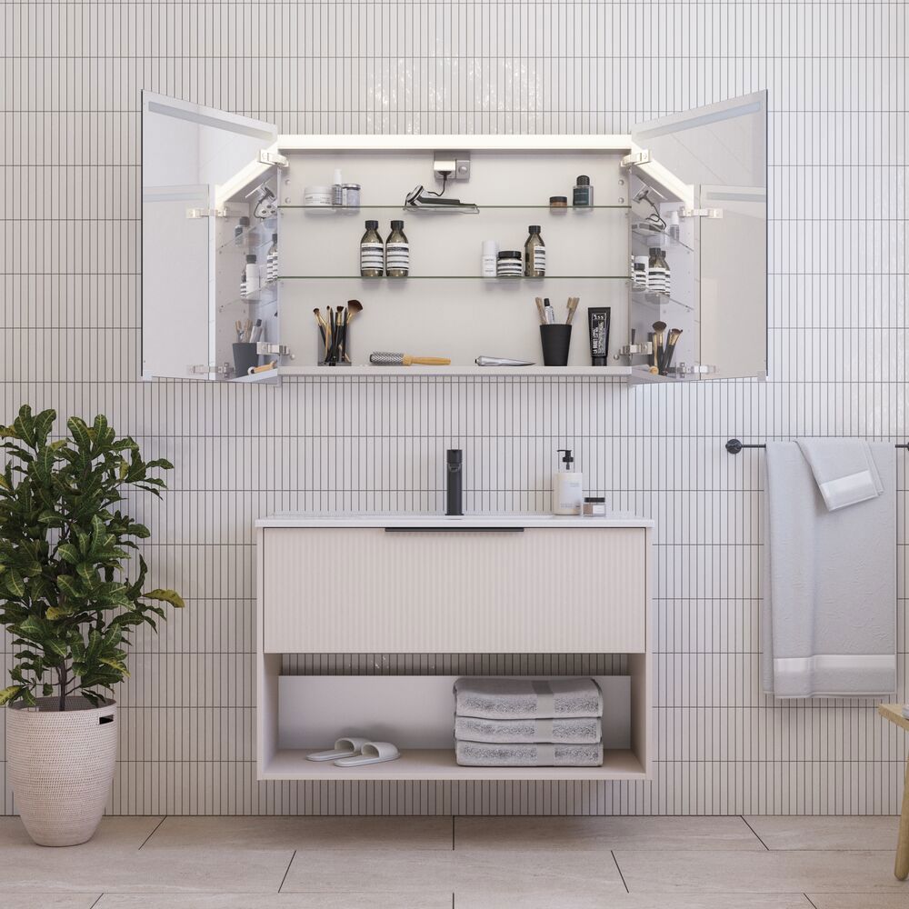 Parallel speilskap med lys og lysstyring
