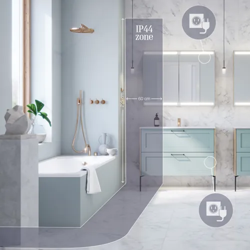 Alle Dansanis lamper og innebygde lys er IP44-godkjent som baderomsbelysning – derfor kan du trygt velge Dansani når du velger belysning.