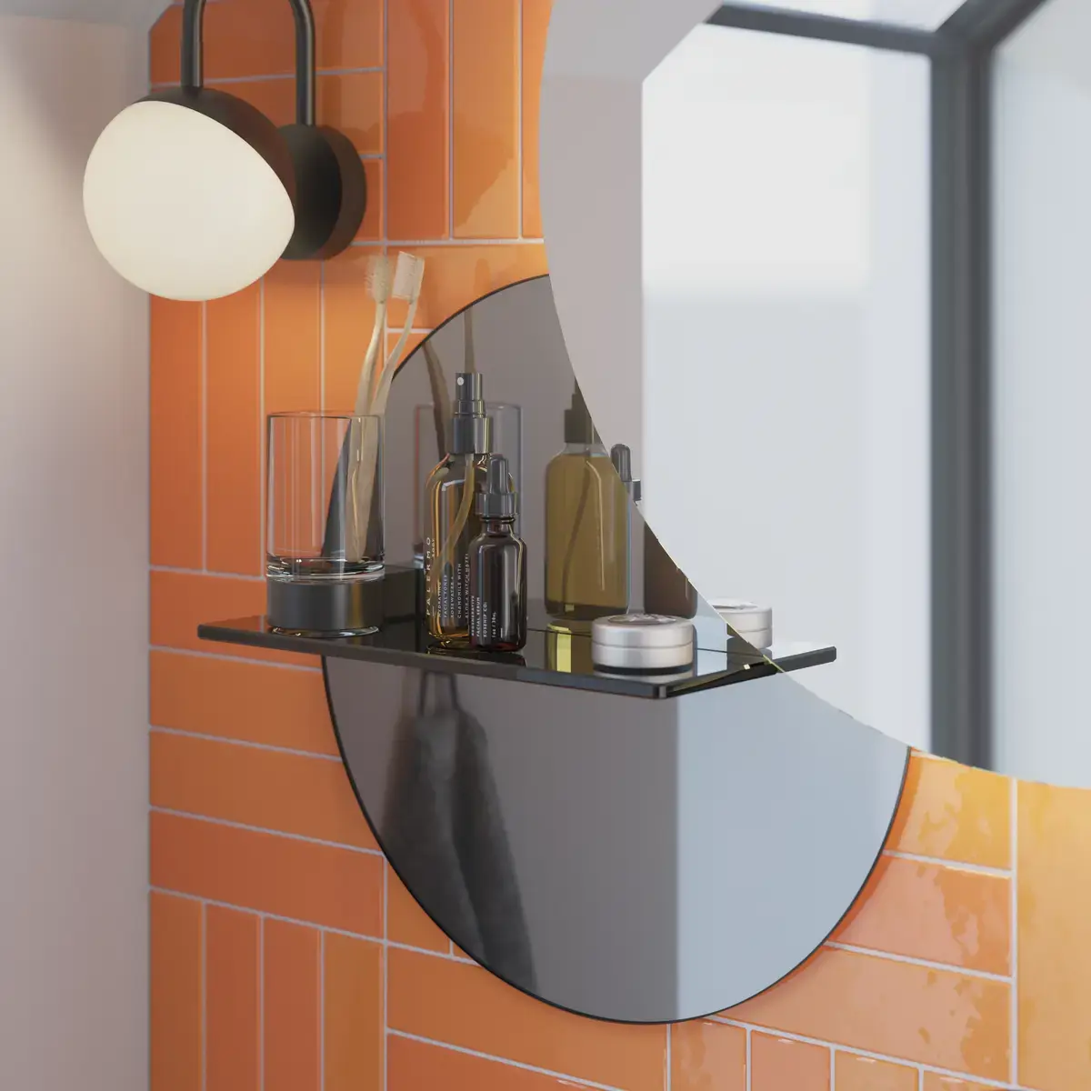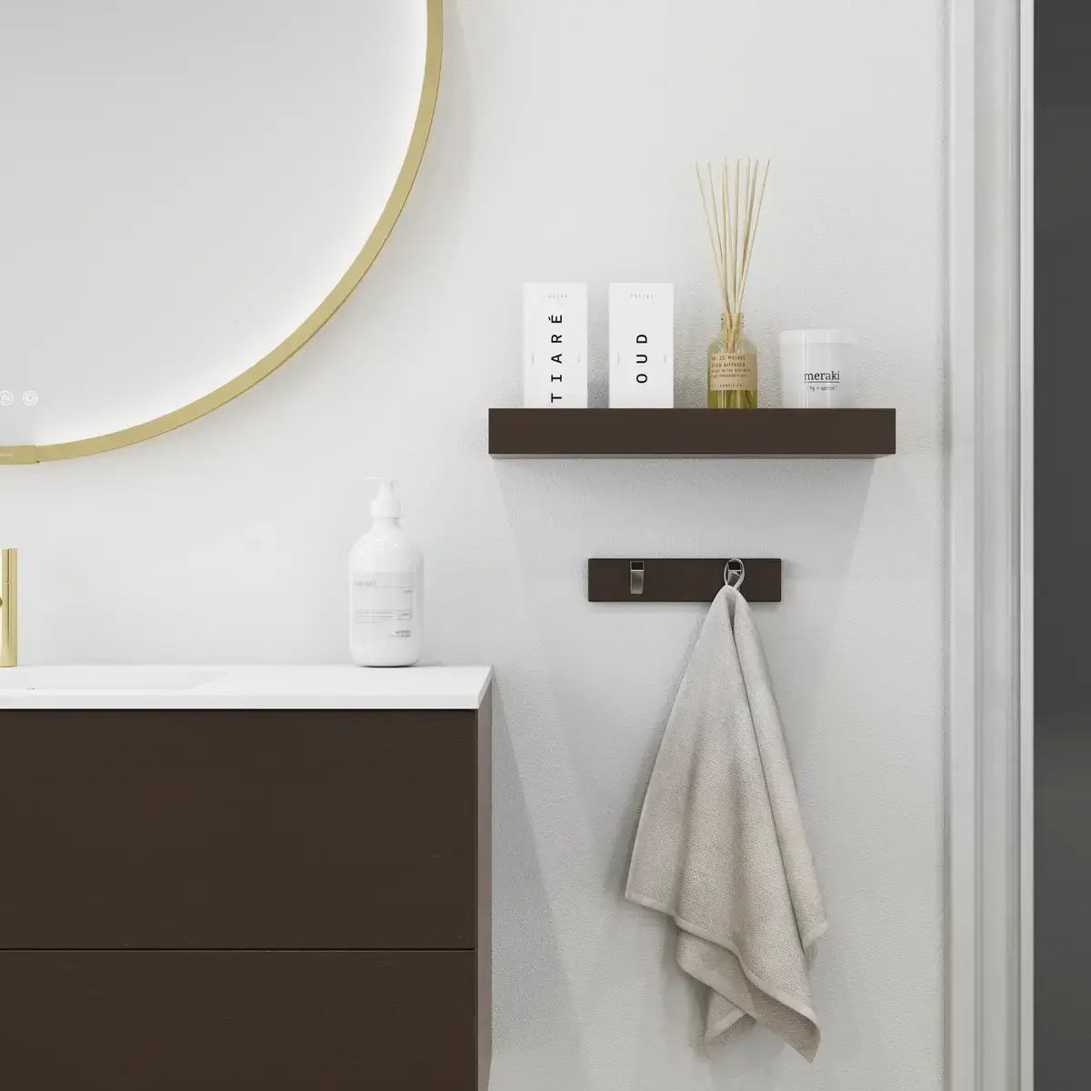 Praktiske hyller setter prikken over i-en i din innredning i rom med skråtak, og gir deg mulighet til å ha de artikler du ofte bruker lett tilgjengelig. Plasser de ved siden av speilet, og utnytt plassen under skråtaket. Du kan velge mellom ulike lengder og la hyllene følge veggens eller speilets form.