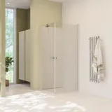 Det korte, faste sidepanelet gjør det mulig å møblere tett opp mot dusjhjørnet. Når du ikke bruker dusjen, kan døren skyves inn uten å treffe armaturen, og du får mer plass.