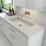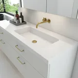 Visste du at våre servanter og benkeplater også kan lages etter mål og derfor kan skreddersys til akkurat ditt behov og ditt bad? Kantene på våre benkeplater i Dansani Inzo kan skjæres til så de passer i alle skrå og skjeve vinkler.