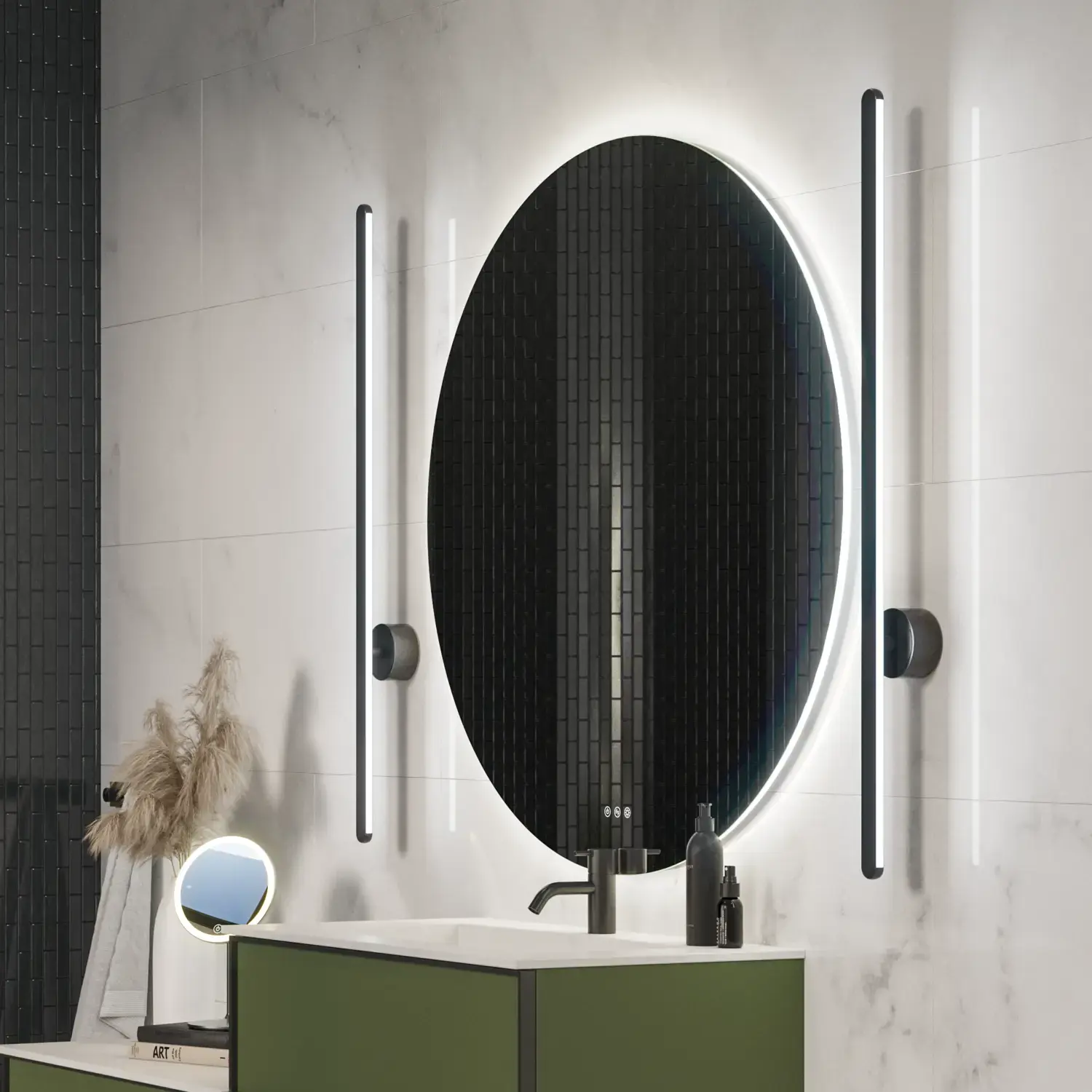 Når du er på vei i seng bør ikke kroppen forstyrres med sterkt lys. I stedet er det ideelt med varmt og dempet baderomslys, som det varme, rødlige lyset i en solnedgang. Om morgenen trenger du derimot et godt arbeidslys som er hvitere og minner mer om det naturlige morgenlyset. Hvis du velger speil og speilskap med lysstyring kan du få begge deler. Det strekker seg helt fra varmt rødlig til kjølig hvitt lys, og du kan selvfølgelig dempe begge deler hvis du ønsker det. Og som nevnt kan du samle speillyset med dine spotter og pendler, så det hele styres samlet med kun et trykk på speilets lysstyring eller med vår fjernkontroll.