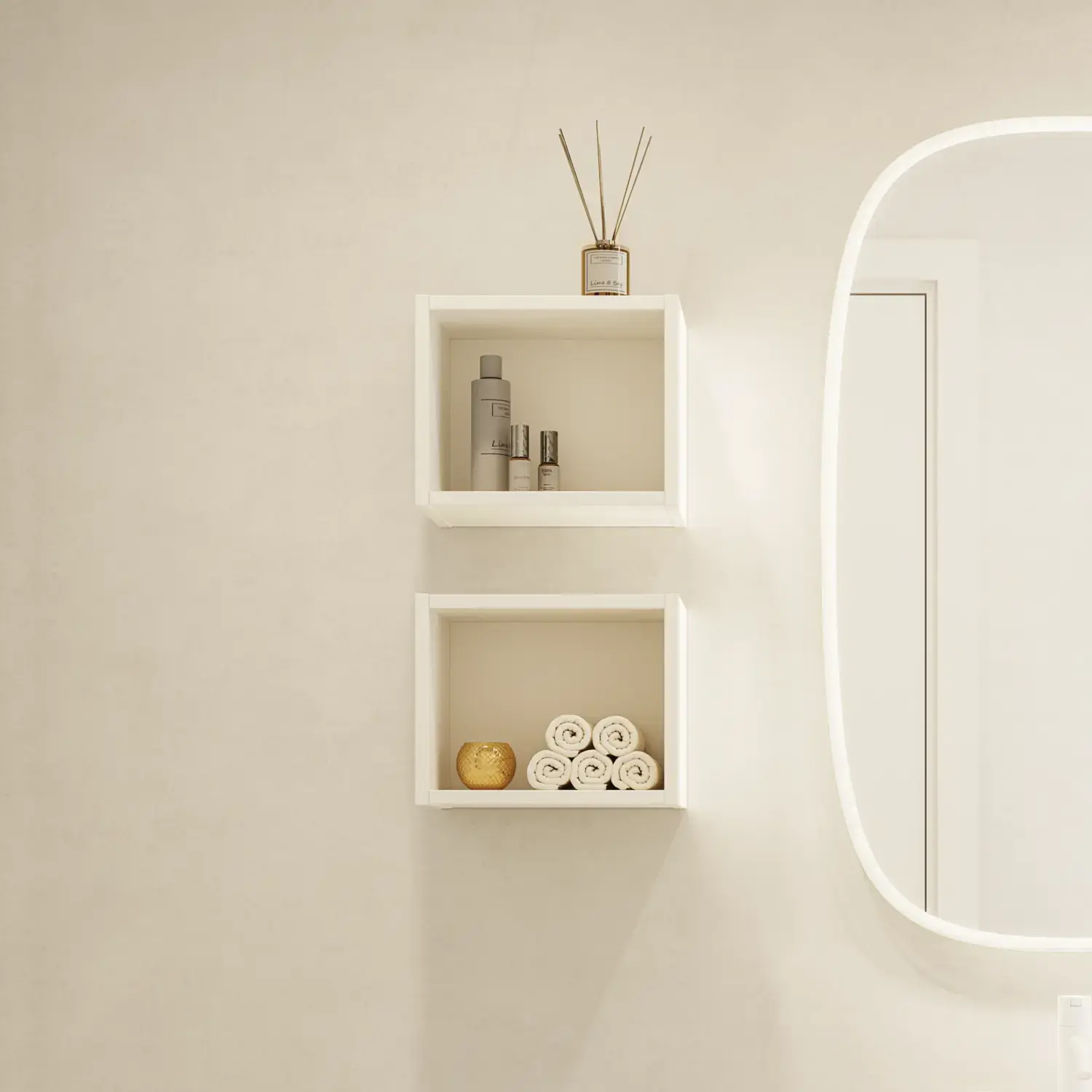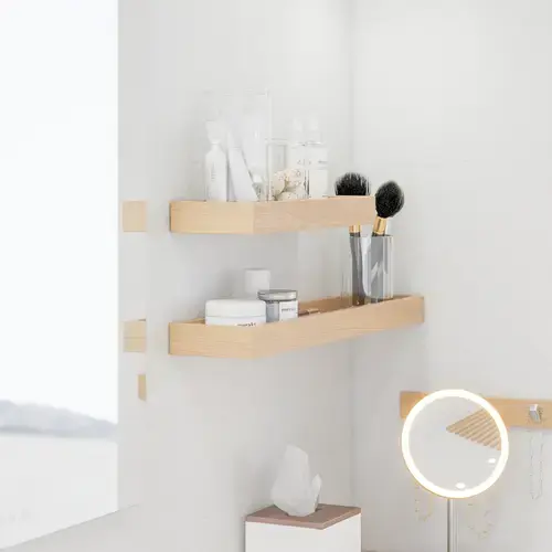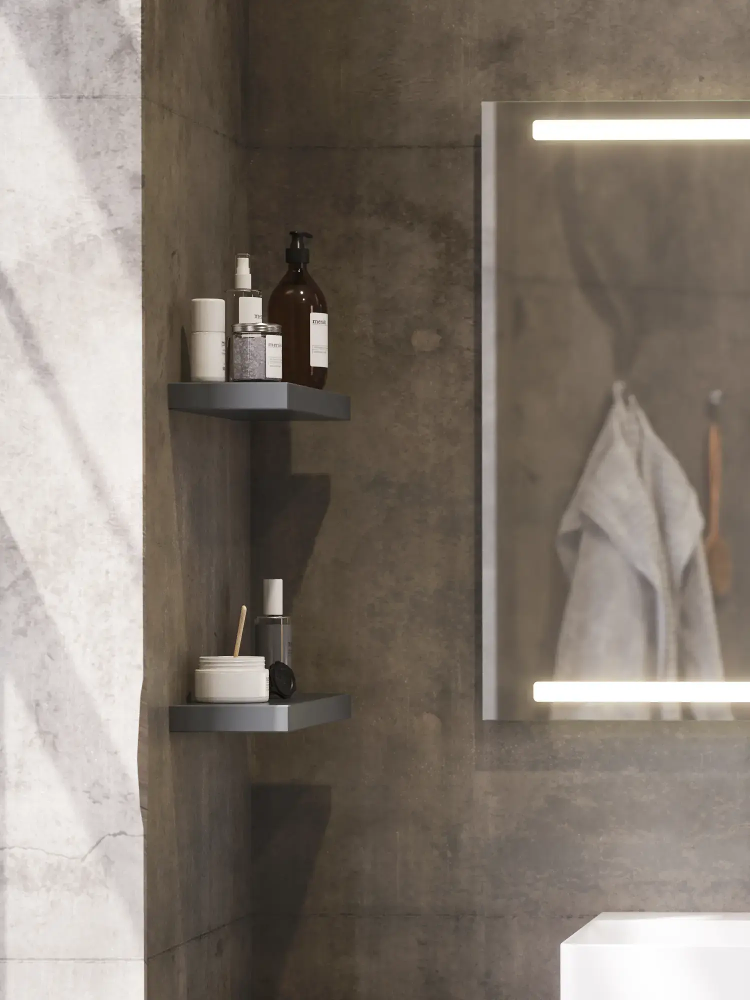 Våre overskap er ideelt til alle dine små parfymer og pleieprodukter – det gir deg god oversikt, og du kan tilføye fine og praktiske treesker til alle de små tingene. Og så tar ikke et overskap mye plass - selv ikke på et lite bad.