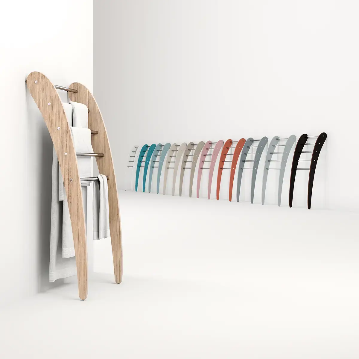 Den mobile håndkleholderen er både et dekorativ baderomstilbehør, og dekker behovet for å ha et sted å henge de våte håndklærne. Mangler du plass kan du plassere den i dusjen når den ikke er i bruk. Den kan også settes inn på soverommet og brukes som ekstra klesstativ, så brukt tøy kan luftes før det skal brukes igjen eller henges inn i skapet.