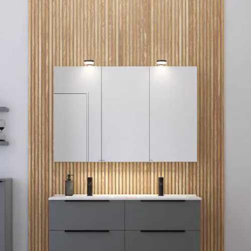 - Eksterne lamper – hvis du foretrekker et speilskap med eksterne lamper, kan du velge mellom flere forskjellige lampedesign og farger