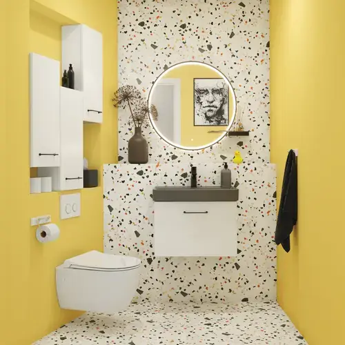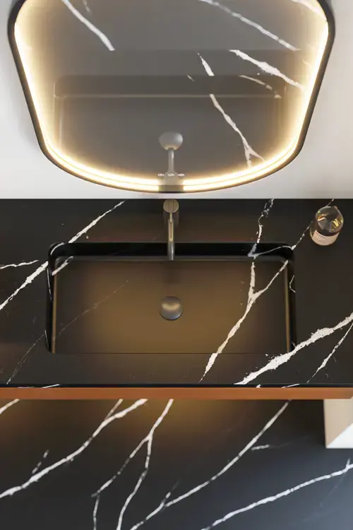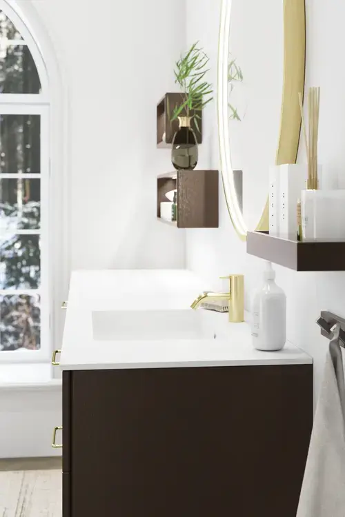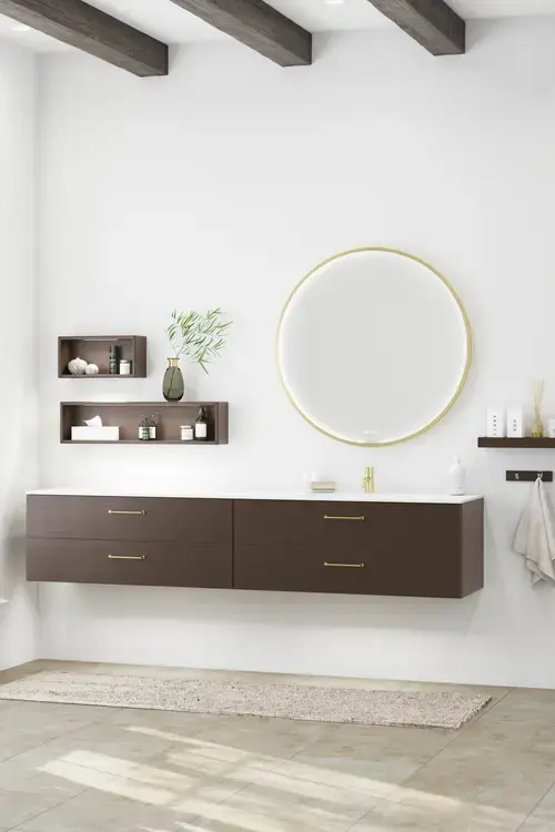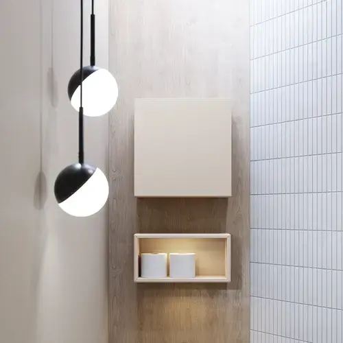 I et stort baderom kan du ogsÄ fÄ ekstra benkeplass ved Ä lage en skjenk, der du setter sammen en benkeplate med skap som enten matcher eller komplementerer resten av mÞblene pÄ badet ditt.