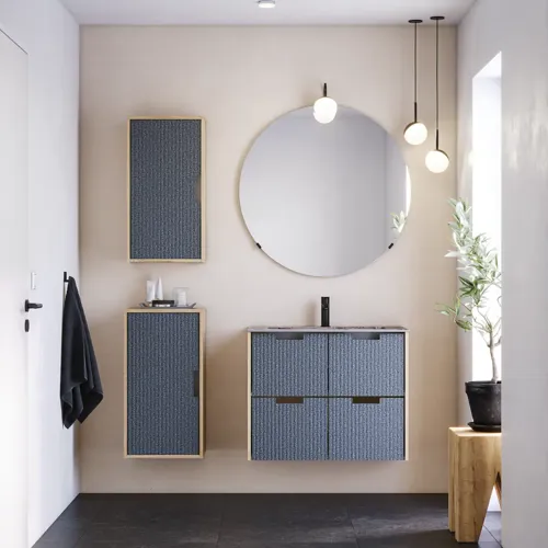 For å kunne sammenligne Lighthouse med et tilsvarende produkt har vi målt Dansani Mido+, vårt bestselgende baderomsmøbel i prosjektmarkedet og et velprøvd produkt av høy kvalitet, som allerede er produsert i melaminbelagte sponplater med 2/3 resirkulert materiale.