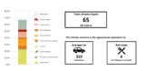 Et Lighthouse Base skap med dører som vist ovenfor tilsvarer 6 røde biffer eller 310 km kjørt i bil. Se i grafen fra MÅLBAR hvordan 65 kg CO2e fordeler seg på materialer, produksjon, emballasje, transport etc.
