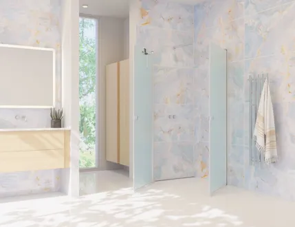 Denne svingdør gir både eleganse og funksjonalitet til badet. Dørene er svært praktiske og brukervennlige, ettersom de kan åpnes både innover og utover. Dermed kan du frigjøre plass på badet når dusjen ikke er i bruk. Svingdørene åpnes og lukkes enkelt og lydløst med slitesterke hengsler, noe som sikrer uproblematisk tilgang til dusjen. Samtidig gir de en effektiv avskjerming som holder vannet inne i dusjen og resten av badet tørt og rent. Det herdede glasset i dørene er behandlet med EasyCare, noe som forlenger svingdørens holdbarhet og levetid.