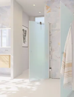 Denne svingdør gir både eleganse og funksjonalitet til badet. Dørene er svært praktiske og brukervennlige, ettersom de kan åpnes både innover og utover. Dermed kan du frigjøre plass på badet når dusjen ikke er i bruk. Svingdørene åpnes og lukkes enkelt og lydløst med slitesterke hengsler, noe som sikrer uproblematisk tilgang til dusjen. Samtidig gir de en effektiv avskjerming som holder vannet inne i dusjen og resten av badet tørt og rent. Det herdede glasset i dørene er behandlet med EasyCare, noe som forlenger svingdørens holdbarhet og levetid.