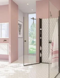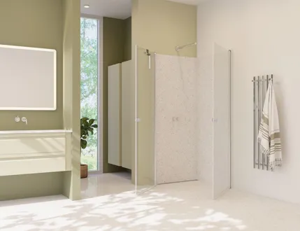 Denne svingdør gir både eleganse og funksjonalitet til badet. Dørene er svært praktiske og brukervennlige, ettersom de kan åpnes både innover og utover. Dermed kan du frigjøre plass på badet når dusjen ikke er i bruk. Svingdørene åpnes og lukkes enkelt og lydløst med slitesterke hengsler, noe som sikrer uproblematisk tilgang til dusjen. Samtidig gir de en effektiv avskjerming som holder vannet inne i dusjen og resten av badet tørt og rent. Det herdede glasset i dørene er behandlet med EasyCare, noe som forlenger svingdørens holdbarhet og levetid.