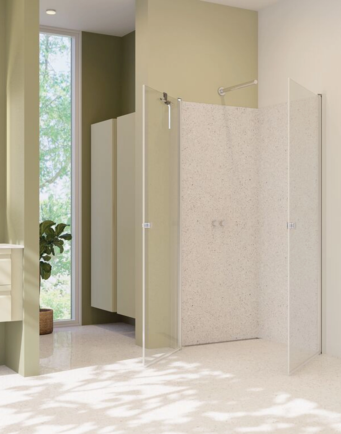 Denne svingdør gir både eleganse og funksjonalitet til badet. Dørene er svært praktiske og brukervennlige, ettersom de kan åpnes både innover og utover. Dermed kan du frigjøre plass på badet når dusjen ikke er i bruk. Svingdørene åpnes og lukkes enkelt og lydløst med slitesterke hengsler, noe som sikrer uproblematisk tilgang til dusjen. Samtidig gir de en effektiv avskjerming som holder vannet inne i dusjen og resten av badet tørt og rent. Det herdede glasset i dørene er behandlet med EasyCare, noe som forlenger svingdørens holdbarhet og levetid.