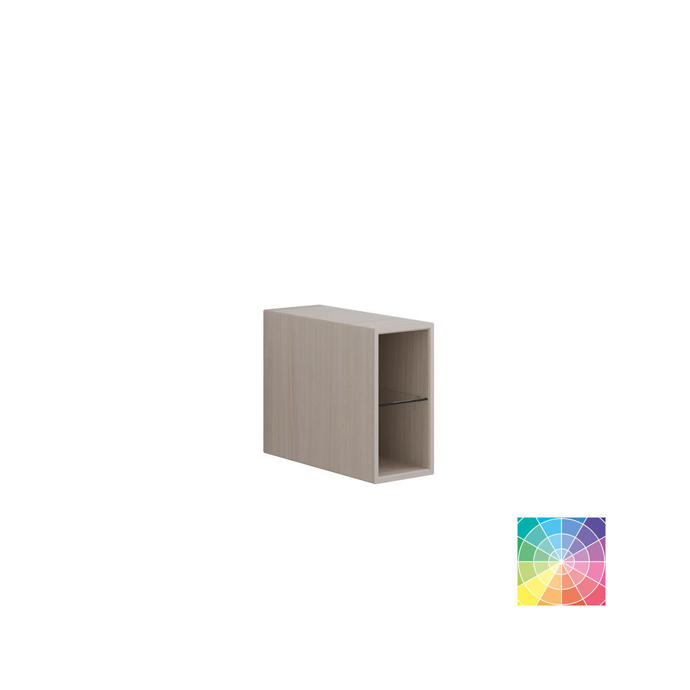 Med en 40 cm åpen hylle på Calidris-badet ditt får du både ekstra oppbevaringsplass og en eksklusiv utstillingshylle. Hyllen har en elegant glasshylle i midten, slik at du kan dele opp innholdet og skape et lyst og innbydende uttrykk. Hyllen er utført med presise gjæringsfuger og finerte eller lakkerte overflater, og fremstår som en naturlig del av møbeldesignen. Den passer perfekt til frontene, og du kan velge integrert belysning på toppen som fremhever tingene dine med et mykt lys - og med mulighet for underbelysning kan du skape enda mer atmosfære i rommet. Den 40 cm høye åpne hyllen innbyr til kreativ innredning - enten du vil vise frem vakre håndklær, designobjekter eller favorittduftene dine - og gir Calidris-møblene dine en ekstra dimensjon av personlighet og luksus. OBS: Det tilkommer en oppstartstillegg (BI1) pr. eik og valgfri farge. Det betales én gang per eik og valgfri farge, uansettav antall produkter.