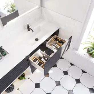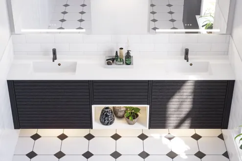 Den åpne reolen er perfekt for å gjøre badet ditt personlig og unikt. Denne smarte åpne reolen kombineres med et servantskap og åpner for en rekke dekor alternativer. Lag en skreddersydd løsning ved å sette sammen reolen og servantskapet på din egen måte, og tilpass oppbevaringsplassen etter dine behov. Med den åpne reolen har du et rom for å vise dine favoritt ting, eller et praktisk rom for oppbevaring av håndklær, toalettpapir og lignende. Legg til lys i den åpne reolen for ekstra effekt. Dette gir en subtil belysning som fokuserer på utstillingen, men det skaper også en veldig fin stemning på badet.  OBS: Det tilkommer en oppstartstillegg (BI1) for produkter med valgfri farge. Det betales én gang per valgfri farge, uansettav antall produkter.