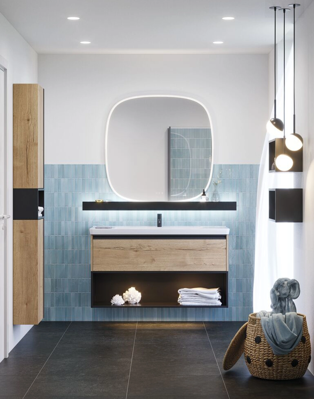 Den åpne reolen er perfekt for å gjøre badet ditt personlig og unikt. Denne smarte åpne reolen kombineres med et servantskap og åpner for en rekke dekor alternativer. Lag en skreddersydd løsning ved å sette sammen reolen og servantskapet på din egen måte, og tilpass oppbevaringsplassen etter dine behov. Med den åpne reolen har du et rom for å vise dine favoritt ting, eller et praktisk rom for oppbevaring av håndklær, toalettpapir og lignende. Legg til lys i den åpne reolen for ekstra effekt. Dette gir en subtil belysning som fokuserer på utstillingen, men det skaper også en veldig fin stemning på badet.  OBS: Det tilkommer en oppstartstillegg (BI1) for produkter med valgfri farge. Det betales én gang per valgfri farge, uansettav antall produkter.