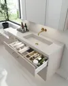 Opplev både vakker design og funksjonalitet med Ambi speilskap. Speilskapet har rikelig med ekstra oppbevaringsplass og leveres med forstørrelsesspeil, metallhylle og magnetskinne. Innvendig finner du også en praktisk stikkontakt og en USB-kontakt som du kan bruke til barbermaskinen, føneren eller når du trenger å lade den elektriske tannbørsten. Ambi speilskap fås selvfølgelig i vakre dekorene, slik at du får et speilskap som matcher baderomsmøbelet ditt. OBS: Det tilkommer en oppstartstillegg (BI1) for produkter med valgfri farge. Det betales én gang per valgfri farge, uansettav antall produkter.