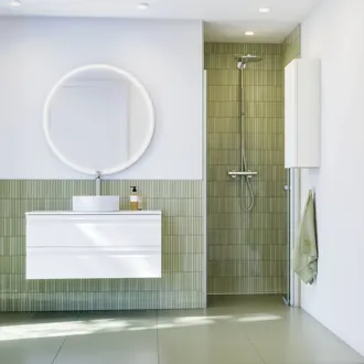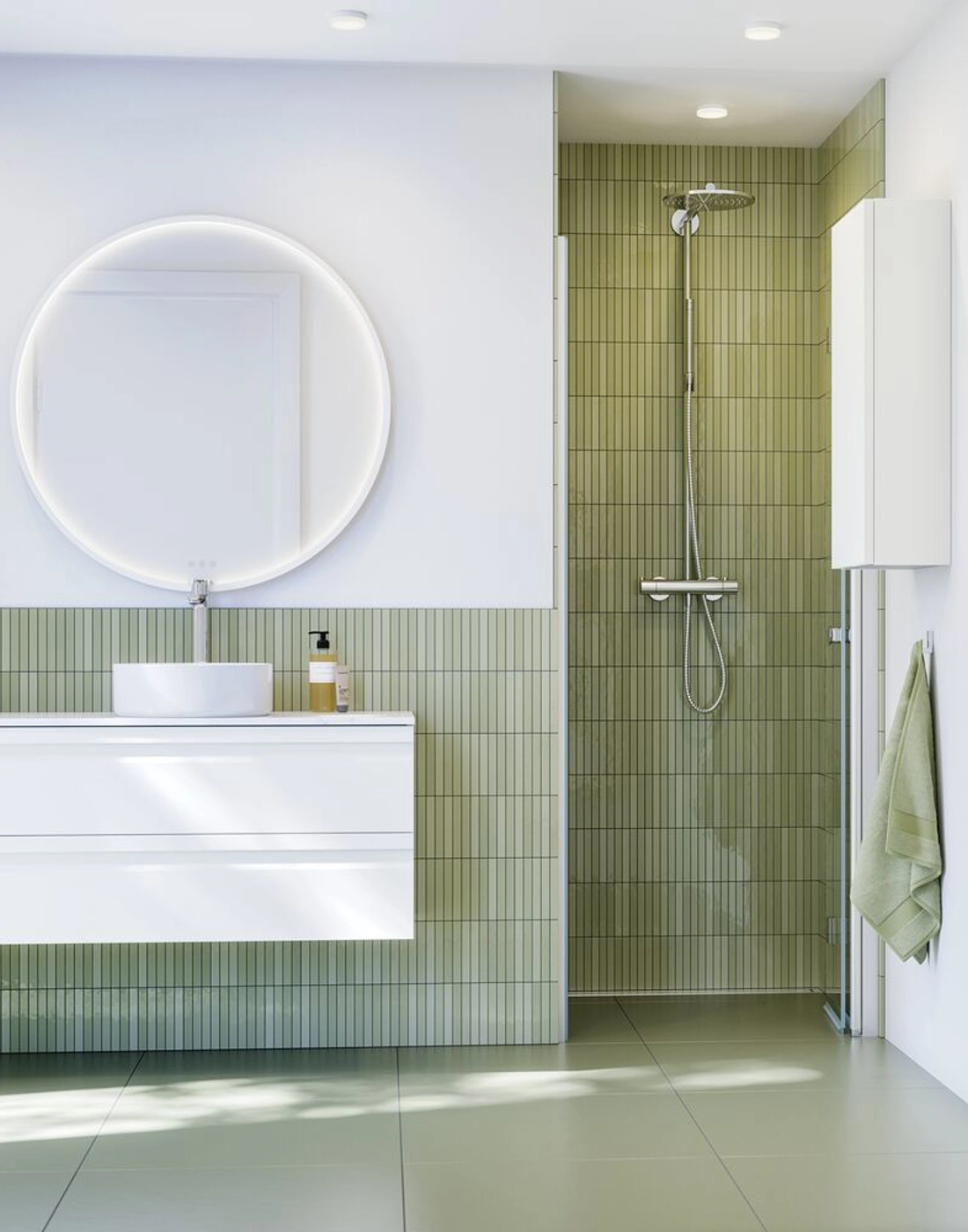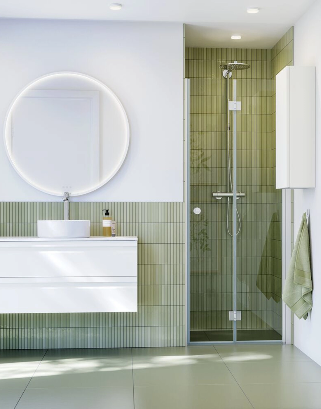 Dansanis anslagsprofil 1 må kombineres med modell A (slagdør), modell B (foldedør) eller modell C (fast vegg med slagdør) i Dansani Match-serien. Anslagsprofilen gjør det mulig å legge til 20 mm. Sammen med hengselprofilen som også kan økes med 20 mm, gir dette en total justering på 40 mm i bredden. Hvis du har behov for ytterligere bredde, kan du legge til en avstandsprofil.