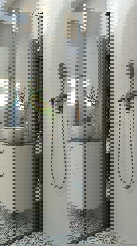 Denne foldedør kan enkelt foldes sammen når dusjen ikke er i bruk, noe som frigjør plass på badet. Foldedørene er konstruert av førsteklasses materialer, inkludert herdet sikkerhetsglass og solide aluminiumsrammer, noe som garanterer lang holdbarhet og stabilitet. De er enkle å betjene med smidige og pålitelige hengsler som sikrer sømløs åpning og lukking av dørene. Ved å velge foldedører kan du maksimere plassen på badet og skape et funksjonelt og luftig dusjområde.