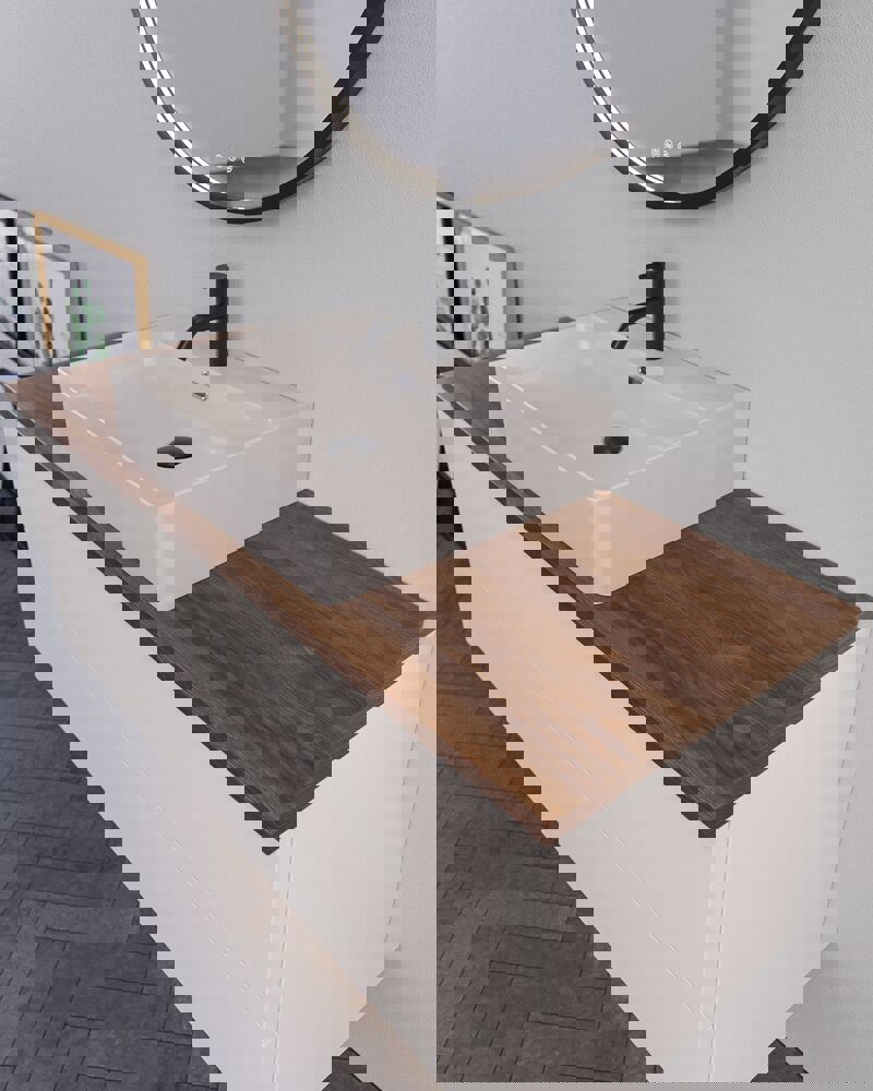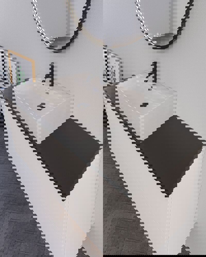 Laminatbenkeplater tilfører både funksjon og stil på badet. Med et design som passer perfekt til Dansani Inzos moderne estetikk, er benkeplater i laminat en slitesterk og praktisk overflate på badet. Laminat er kjent for å være motstandsdyktig mot slitasje, flekker og fuktighet, noe som gjør den ideell for badet. Laminatbenkeplate fås i en rekke dekor og teksturer som passer til din personlige smak og innredning.