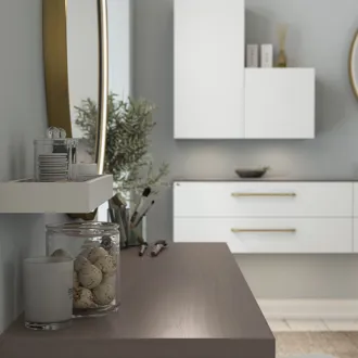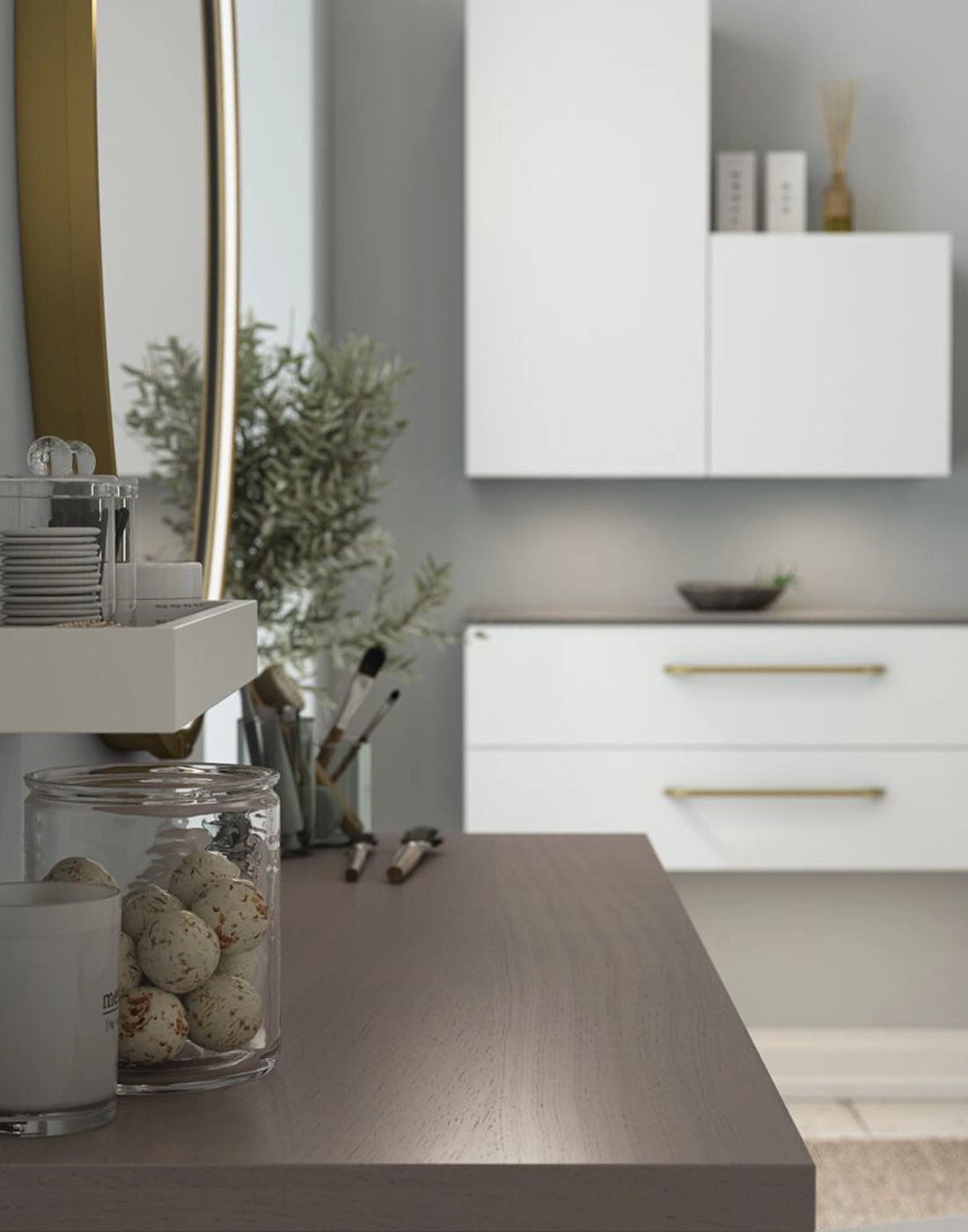 Benkeplatene i tre til Dansanis Calidris serie tilfører badet ditt naturlig eleganse. De skreddersydde benkeplatene er laget av førsteklasses tresorter og tilpasset Calidris møblene, noe som skaper en harmonisk forbindelse mellom funksjonalitet og estetikk. Den varme og autentiske trestrukturen gir rommet et varmt uttrykk, samtidig som den tilfører en følelse av luksus og kvalitet. OBS: Det tilkommer en oppstartstillegg (BI1) pr. eik og valgfri farge. Det betales én gang per eik og valgfri farge, uansettav antall produkter.