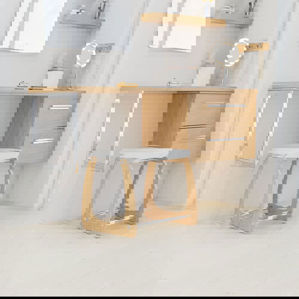Benkeplatene i tre til Dansanis Calidris serie tilfører badet ditt naturlig eleganse. De skreddersydde benkeplatene er laget av førsteklasses tresorter og tilpasset Calidris møblene, noe som skaper en harmonisk forbindelse mellom funksjonalitet og estetikk. Den varme og autentiske trestrukturen gir rommet et varmt uttrykk, samtidig som den tilfører en følelse av luksus og kvalitet. OBS: Det tilkommer en oppstartstillegg (BI1) pr. eik og valgfri farge. Det betales én gang per eik og valgfri farge, uansettav antall produkter.