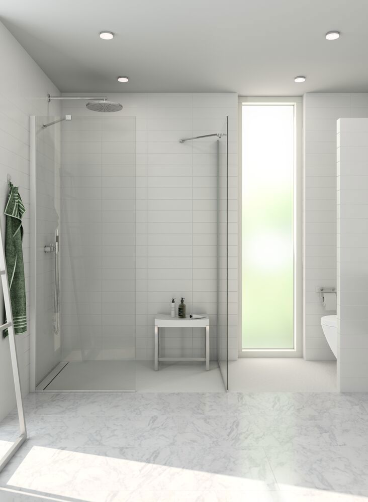 Fastveggen er designet med fokus på å skape et romslig og stilrent dusjområde som kan tilpasses din personlige stil og baderomsinnredning. Våre fastvegger kan kombineres med andre dusjvegger eller dusjdører, noe som gir deg muligheten til å skape en løsning som passer perfekt inn på badet ditt. Kanskje har du god plass og kan lage et dusjkabinett? Eller kanskje du vil kombinere fastveggen med en svingdør for en stabil og sikker løsning? Uansett hva du velger, kan du finne den løsningen som passer deg best. Glasset i fastveggen er behandlet med EasyCare, et spesialbelegg som avviser vann og såperester og som gjør rengjøringen mye enklere. Glasset er også herdet, den sterke konstruksjonen og det solide materialet sørger for at veggene er stabile og pålitelige.