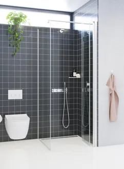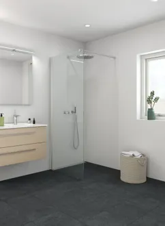 Fastveggen er designet med fokus på å skape et romslig og stilrent dusjområde som kan tilpasses din personlige stil og baderomsinnredning. Våre fastvegger kan kombineres med andre dusjvegger eller dusjdører, noe som gir deg muligheten til å skape en løsning som passer perfekt inn på badet ditt. Kanskje har du god plass og kan lage et dusjkabinett? Eller kanskje du vil kombinere fastveggen med en svingdør for en stabil og sikker løsning? Uansett hva du velger, kan du finne den løsningen som passer deg best. Glasset i fastveggen er behandlet med EasyCare, et spesialbelegg som avviser vann og såperester og som gjør rengjøringen mye enklere. Glasset er også herdet, den sterke konstruksjonen og det solide materialet sørger for at veggene er stabile og pålitelige.