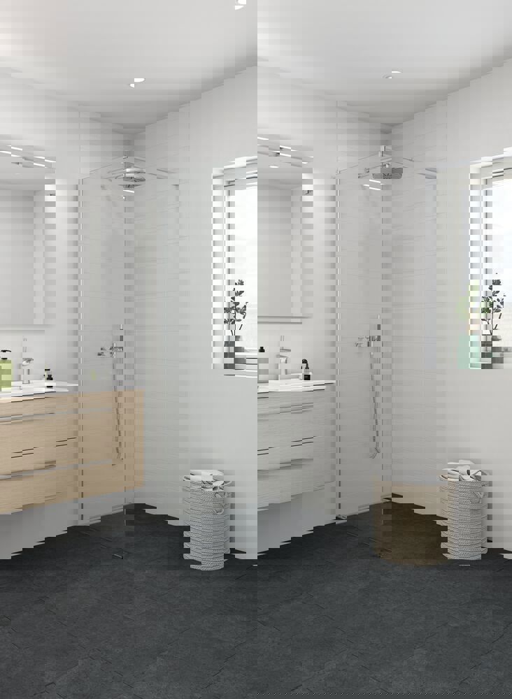 Fastveggen er designet med fokus på å skape et romslig og stilrent dusjområde som kan tilpasses din personlige stil og baderomsinnredning. Våre fastvegger kan kombineres med andre dusjvegger eller dusjdører, noe som gir deg muligheten til å skape en løsning som passer perfekt inn på badet ditt. Kanskje har du god plass og kan lage et dusjkabinett? Eller kanskje du vil kombinere fastveggen med en svingdør for en stabil og sikker løsning? Uansett hva du velger, kan du finne den løsningen som passer deg best. Glasset i fastveggen er behandlet med EasyCare, et spesialbelegg som avviser vann og såperester og som gjør rengjøringen mye enklere. Glasset er også herdet, den sterke konstruksjonen og det solide materialet sørger for at veggene er stabile og pålitelige.