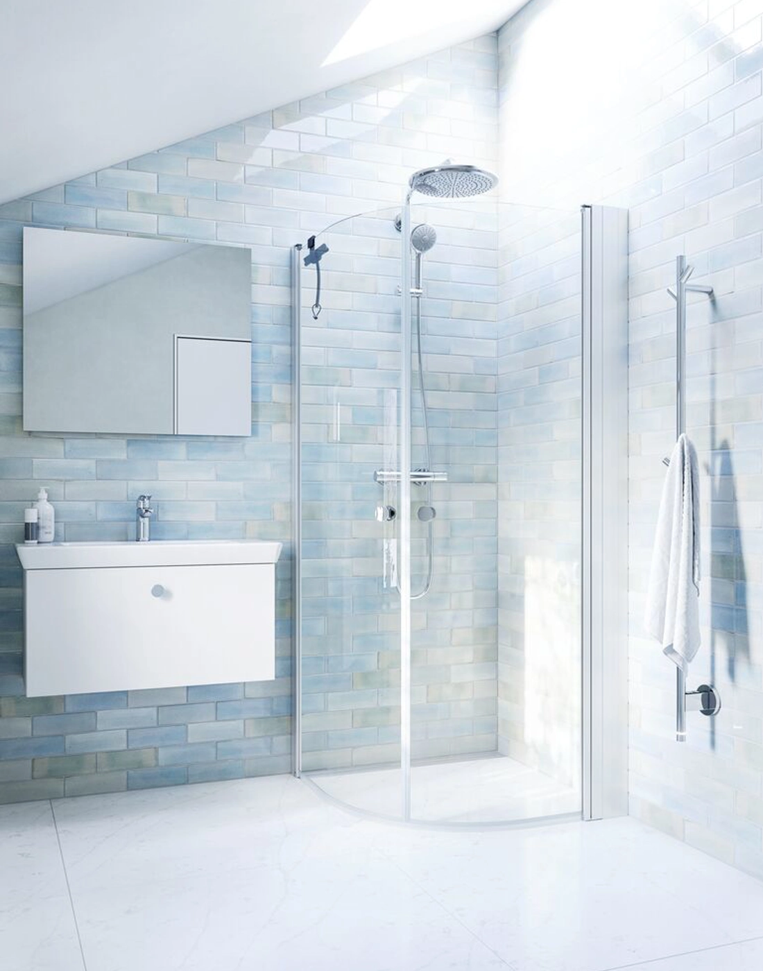 De buede svingdør kombinerer estetikk og funksjonalitet for å gi deg den perfekte dusjopplevelsen. Dørene er laget av førsteklasses materialer som er behandlet med EasyCare, noe som reduserer kalkavleiringer og gjør rengjøringen betydelig enklere. De buede svingdørene er designet med tanke på brukervennlighet. Dørene svinger jevnt og lydløst på slitesterke hengsler, noe som gjør det enkelt å komme inn og ut av dusjen. Dørene er utformet slik at magnetlisten i dørene lukker tett, og forhindrer vannsøl utenfor dusjområdet slik at resten av badet holdes tørt. I tillegg kan dørene åpnes både utover og innover, noe som frigjør plass på badet når dusjen ikke er i bruk.