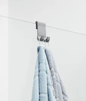 Denne praktiske håndklekroken i silikon er tilgjengelig både i lys og mørk grå. De kommer som sett med to doble kroker, og de er svært praktiske. Du kan henge dem på kanten av dusjglasset, enten innvendig eller utvendig. Krokene er perfekte til å henge opp håndklær, børster, svamper eller andre ting slik at de er lett tilgjengelig når du står i dusjen og trenger dem..