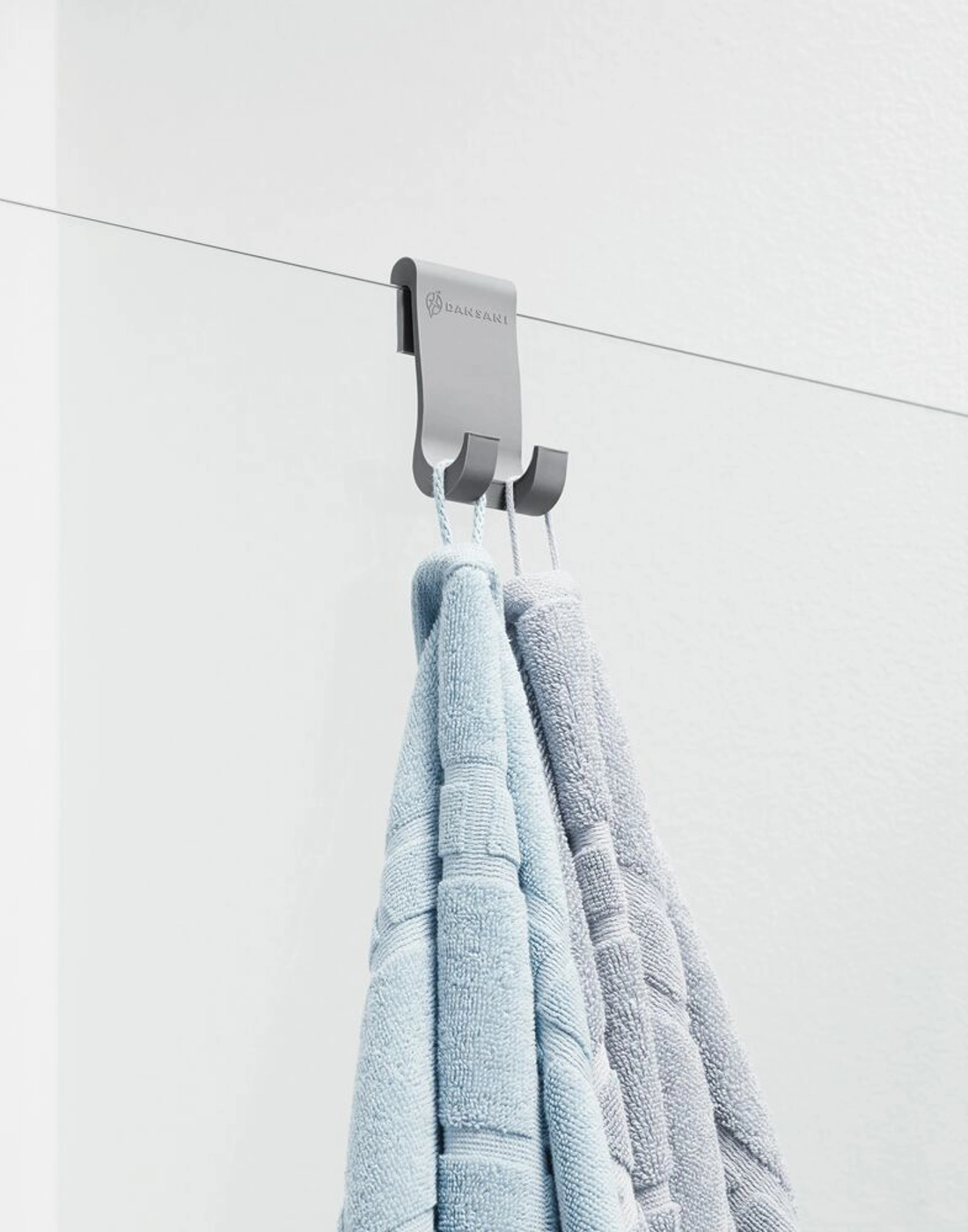 Denne praktiske håndklekroken i silikon er tilgjengelig både i lys og mørk grå. De kommer som sett med to doble kroker, og de er svært praktiske. Du kan henge dem på kanten av dusjglasset, enten innvendig eller utvendig. Krokene er perfekte til å henge opp håndklær, børster, svamper eller andre ting slik at de er lett tilgjengelig når du står i dusjen og trenger dem..