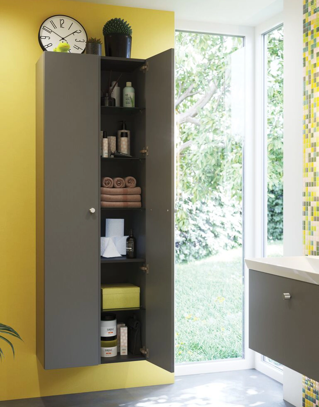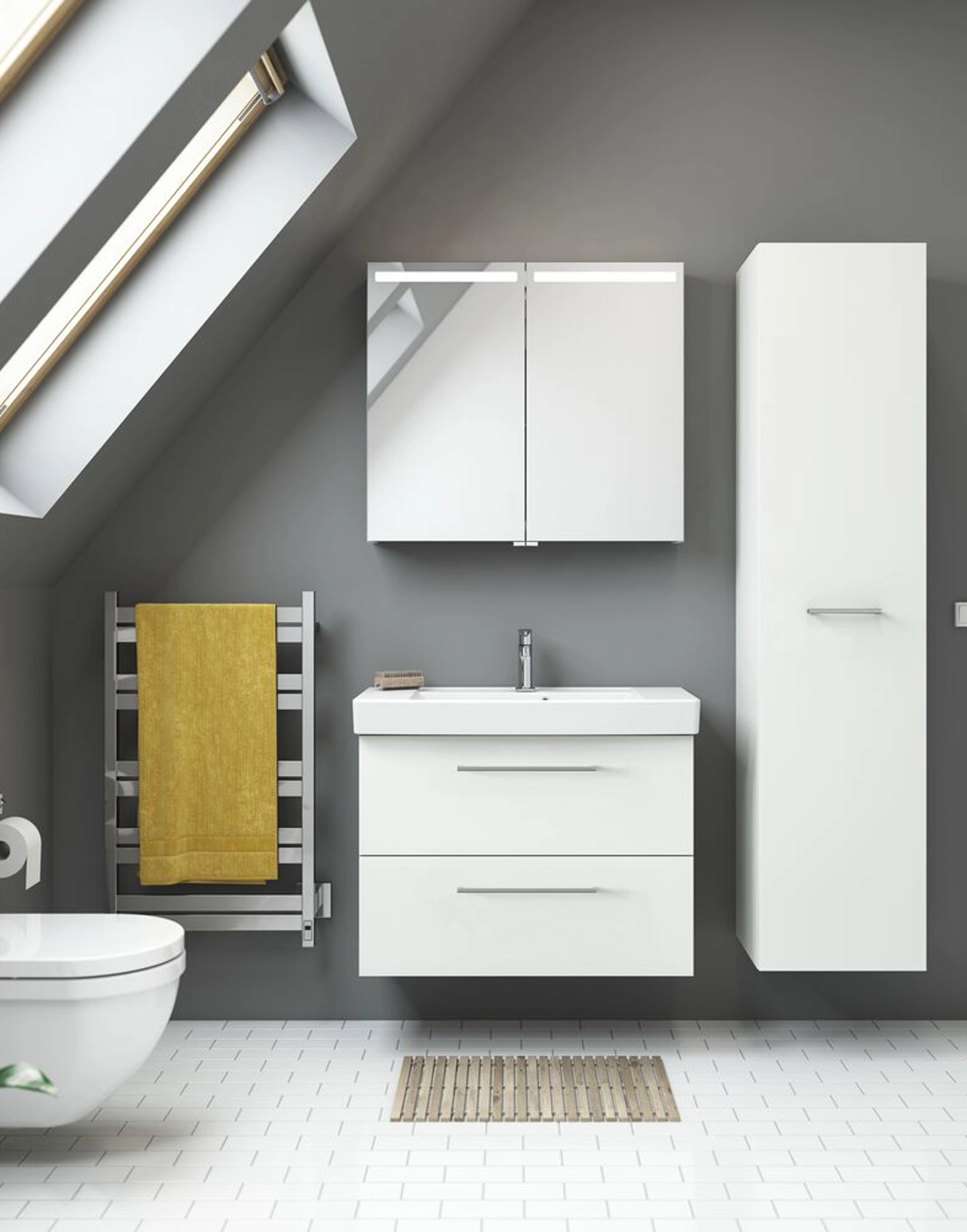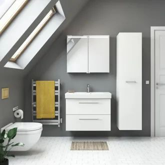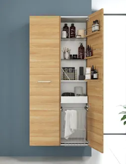 Utnytt hver centimeter av plassen på badet med Dansani Mido+ høyskap. Med et høyskap får du plass til alle baderomsartiklene dine. Har du plass anbefaler vi absolutt et høyskap til badet ditt. I dette høyskapet finner du 1 trehylle, 4 glasshyller og 3 hyller på døren, noe som gir deg god plass og mulighet til å optimalisere badet. Opplev en ny dimensjon av orden og design på badet med Dansani Mido+ høyskap.