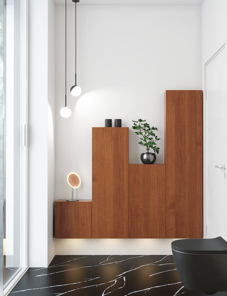 Velg høyskap C med stripete front for den ultimate oppbevaringsløsningen. De elegante vertikale stripene gir skapet et moderne og karakterfullt utseende som fremhever interiøret og gir rommet et eksklusivt preg. Med én trehylle, tre avkortede glasshyller, tre trebrett på innsiden av døren, to praktiske uttrekkbare brett og en integrert skittentøypose får du maksimal funksjonalitet i ett og samme møbel. Denne smarte innredningen gjør det enkelt å holde orden på både små og store ting, slik at badet ditt alltid ser ryddig og innbydende ut. Det høye skapet er tilgjengelig i hvitt, sand og lyseblått - tre stilige farger som gir deg mulighet til å sette ditt personlige preg: Velg klassisk hvitt for et tidløst uttrykk, sand for en rolig og naturlig følelse eller lyseblått for et friskt pust. Et funksjonelt og estetisk møbel som kombinerer smart oppbevaring med elegant design. Husk å tilføre baderomsmøbelet de små praktiske tingene som du har glede av i hverdagen. For eksempel lys i skuffer og skap, innebygde stikkontakter og dempede sensorlamper under møblene som hjelper deg når du er på badet om natten. Tilvalg bestilles samtidig med møblene dine.