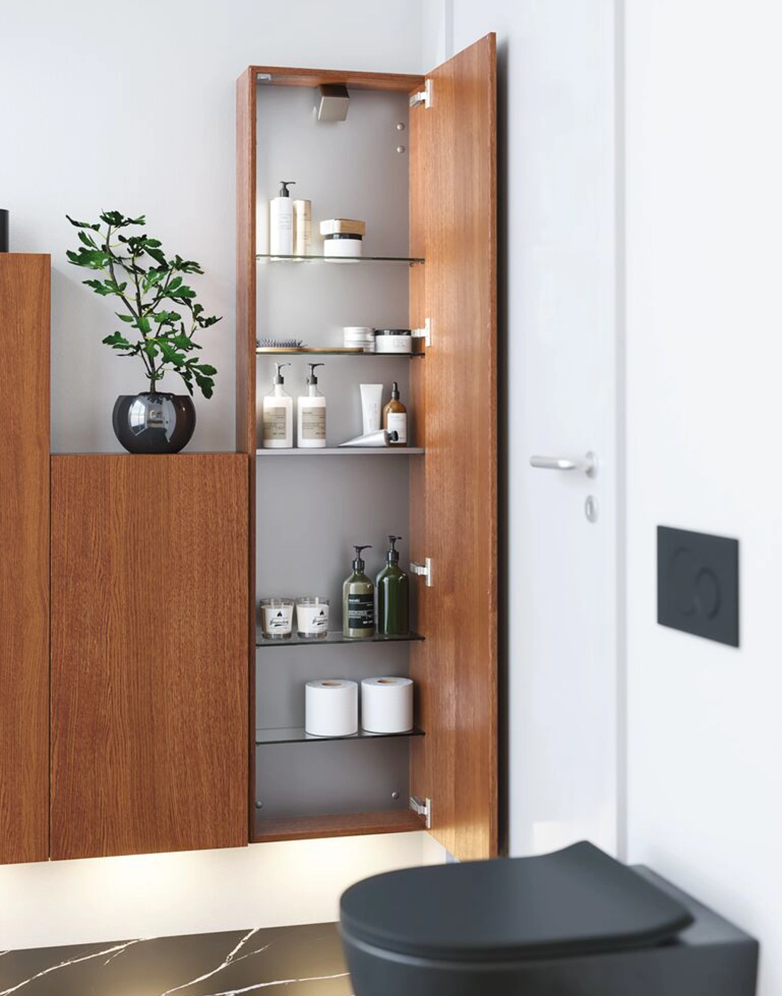 Har du et bad med begrenset plass og behov for oppbevaring? Da er dette høyskapet fra Dansani Calidris løsningen for deg. Høyskapet er bare 16 cm dypt, men har likevel god plass til å oppbevare og organisere baderomsartikler. Høyskapet er en diskret, men funksjonell løsning som gir deg mulighet til å oppbevare baderomsartikler, holde orden og frigjøre plass. OBS: Det tilkommer en oppstartstillegg (BI1) pr. eik og valgfri farge. Det betales én gang per eik og valgfri farge, uansettav antall produkter. Husk å tilføre baderomsmøbelet de små praktiske tingene som du har glede av i hverdagen. For eksempel lys i skuffer og skap, innebygde stikkontakter og dempede sensorlamper under møblene som hjelper deg når du er på badet om natten. Tilvalg bestilles samtidig med møblene dine.