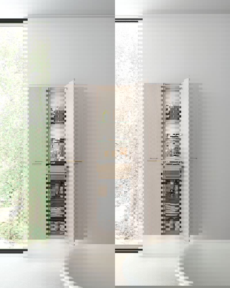 Baderomsoppbevaring blir enkelt og stilig med Dansani Calidris høyskap. Disse skapene er ikke bare et praktisk element, men også en estetisk fornøyelse som passer perfekt til det moderne baderomsinteriøret. Calidris høyskap har smarte hyller og rom som gjør det mulig å organisere alt fra håndklær og toalettsaker til skjønnhetsprodukter på en oversiktlig måte. Høyskapenes elegante design og rene linjer gir en følelse av orden og harmoni i bademiljøet. OBS: Det tilkommer en oppstartstillegg (BI1) pr. eik og valgfri farge. Det betales én gang per eik og valgfri farge, uansettav antall produkter. Husk å tilføre baderomsmøbelet de små praktiske tingene som du har glede av i hverdagen. For eksempel lys i skuffer og skap, innebygde stikkontakter og dempede sensorlamper under møblene som hjelper deg når du er på badet om natten. Tilvalg bestilles samtidig med møblene dine.