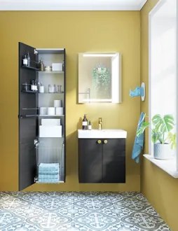 Utnytt hver centimeter av plassen på badet med Dansani Mido+ høyskap. Med et høyskap får du plass til alle baderomsartiklene dine. Har du plass anbefaler vi absolutt et høyskap til badet ditt. I dette høyskapet finner du 1 trehylle, 4 glasshyller og 3 hyller på døren, noe som gir deg god plass og mulighet til å optimalisere badet. Opplev en ny dimensjon av orden og design på badet med Dansani Mido+ høyskap.