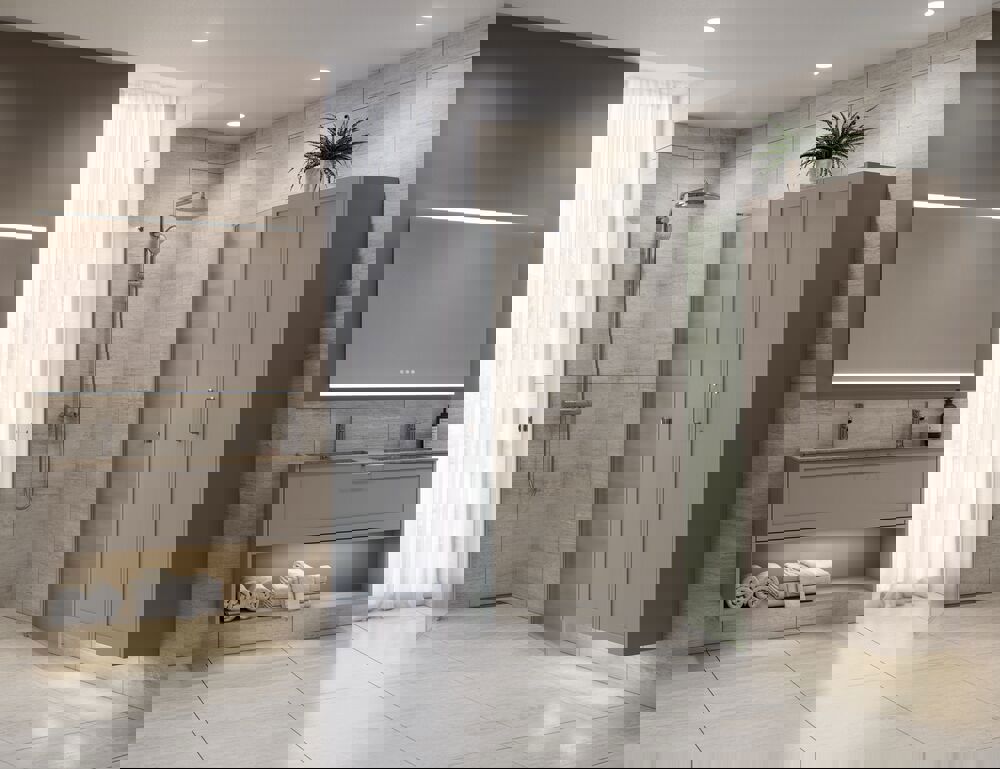 Skap et tidløst uttrykk på badet ditt med et høyskap med klassisk rammefront. Dette skapet måler 176 cm i høyden og 35 cm i dybden, noe som gir deg den perfekte oppbevaringsløsningen for håndklær, toalettartikler og andre nødvendigheter. Det er utstyrt med én trehylle og fem glasshyller, slik at du kan organisere tingene dine og ha dem lett tilgjengelige. Den klassiske rammefronten tilfører eleganse og passer perfekt inn i både tradisjonelle og moderne baderom. OBS: Det tilkommer en oppstartstillegg (BI1) for produkter med valgfri farge. Det betales én gang per valgfri farge, uansettav antall produkter. Husk å tilføre baderomsmøbelet de små praktiske tingene som du har glede av i hverdagen. For eksempel lys i skuffer og skap, innebygde stikkontakter og dempede sensorlamper under møblene som hjelper deg når du er på badet om natten. Tilvalg bestilles samtidig med møblene dine.