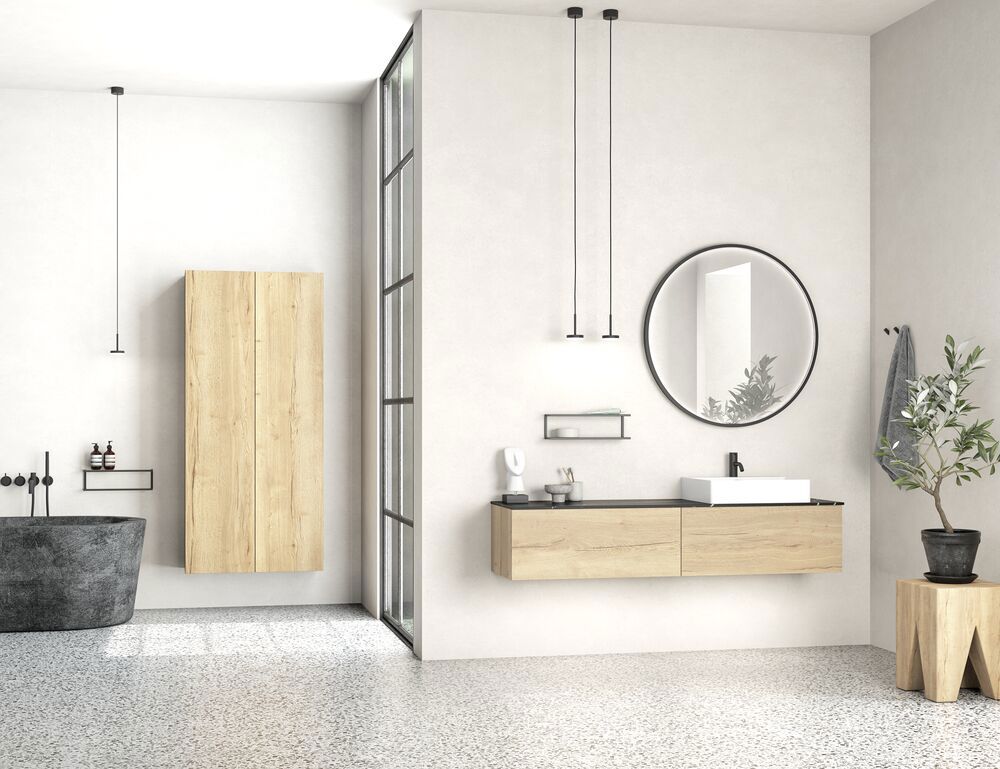 Skap orden og stil på badet med et 60 cm bredt høyskap med glatt front i versjon A. Dette elegante høyskapet med dobbeltdør har en trehylle og fem romslige glasshyller som gir rikelig med oppbevaringsplass til håndklær, toalettsaker og mer. Den glatte fronten skaper en minimalistisk og tidløs design som passer til enhver baderomsinnredning. Dette høyskap gir deg både plass og eleganse, perfekt for å skape et organisert baderom. OBS: Det tilkommer en oppstartstillegg (BI1) for produkter med valgfri farge. Det betales én gang per valgfri farge, uansettav antall produkter. Husk å tilføre baderomsmøbelet de små praktiske tingene som du har glede av i hverdagen. For eksempel lys i skuffer og skap, innebygde stikkontakter og dempede sensorlamper under møblene som hjelper deg når du er på badet om natten. Tilvalg bestilles samtidig med møblene dine.