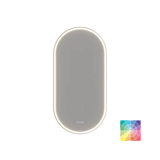 Hoop ovalt speil gir et stilfullt og moderne uttrykk med sin unike svevende ramme. Den buede innerammen leder lyset jevnt fremover og skaper et mykt, diffust lys som gir behagelig belysning uten å blende. Speilet er utstyrt med lysstyring, slik at du enkelt kan justere lysstyrken etter behov, enten det er for sminke eller en avslappende atmosfære. Hoop-speilet leveres som standard med en svart ramme, men det kan også fås med en spesiallakkert ytterramme som passer til ditt baderom. Du kan kjøpe et montert varmefelt til speilet for å forhindre at speilet dugger når du dusjer. OBS: Det tilkommer en oppstartstillegg (BI1) for produkter med valgfri farge. Det betales én gang per valgfri farge, uansettav antall produkter.