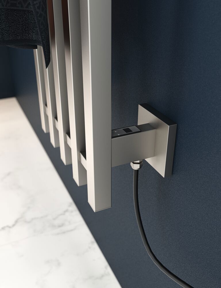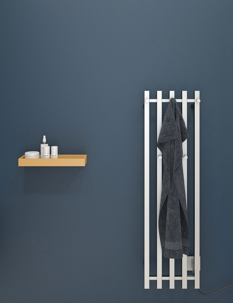 Dansani Kvika håndkletørker har et slankt design, og den rette og stilrene modellen er en effektiv måte å holde håndklærne tørre og varme på. Håndkletørkeren har 5 kroker i 2 ulike høyder for både store og små håndklær. Den moderne estetikken passer til de fleste baderomsinnredninger og tilfører en følelse av luksus til badet ditt.