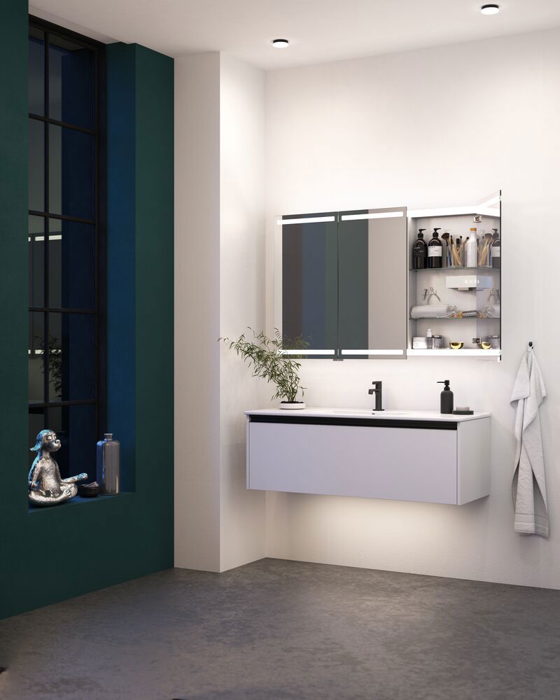 Skap den perfekte stemningen på badet med lys under servantskap. Den myke og diskrete belysningen skaper en avslappende atmosfære på badet. Lyset under servantskapet kan leveres med bevegelsessensor, slik at lyset automatisk slås på når du for eksempel går på toalettet om natten og ikke ønsker å forstyrre søvnrytmen din.