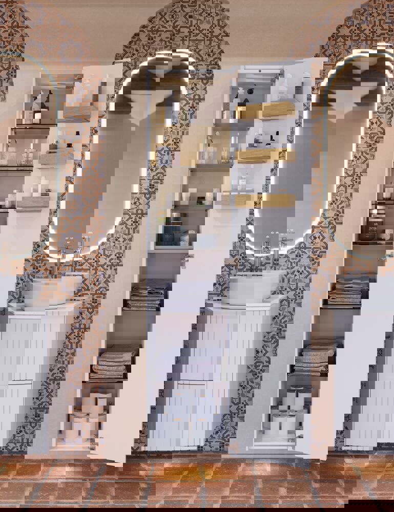 Natura håndtaket er et elegant trehåndtak i lakkert eik eller valnøtt, designet for å tilføre varme og karakter til badet. Med sin naturlige trefinish står Natura som en vakker kontrast til både hvite møbler og møbler i mer unike farger, der den fremhever og komplimenterer fargevalget. Håndtaket gir et innbydende, organisk preg som skaper harmoni mellom møblene og de øvrige elementene på badet, uavhengig av stil og innredning.